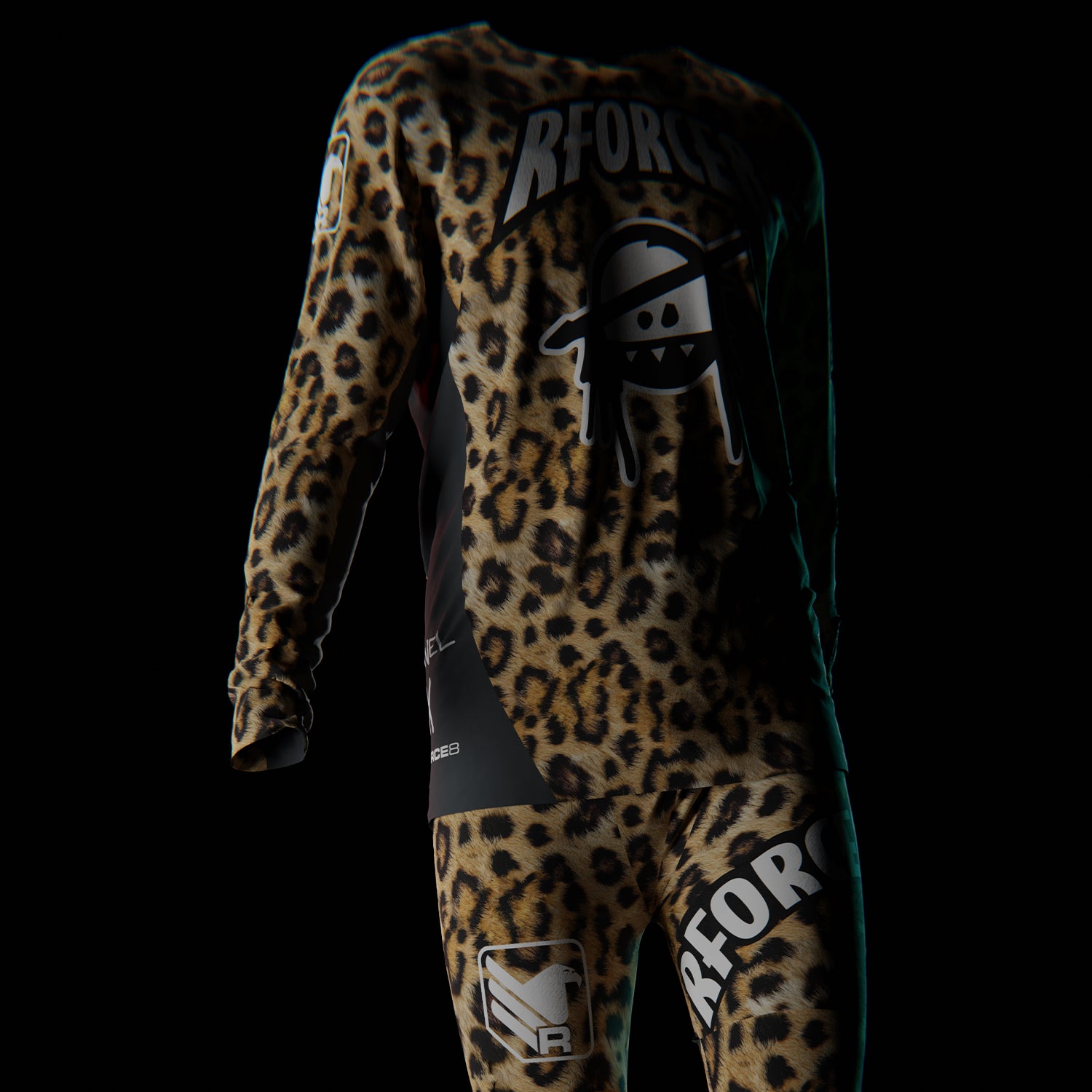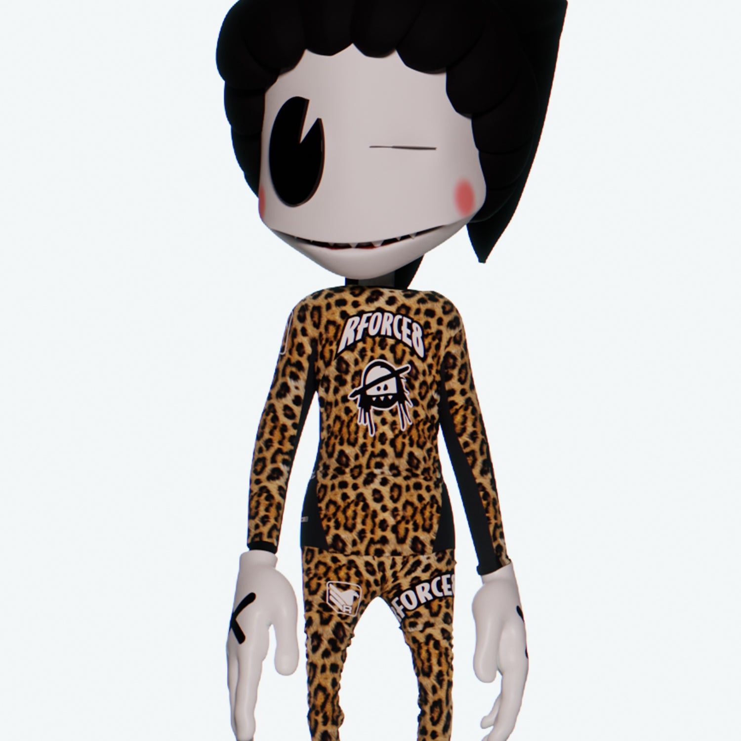 When we talked to Yan about Yonel, it was natural that he would also wear RFORCE8, just like his creator. Except that, a little unexpected twist: it was ultimately Yan who ended up wearing the same outfits as Yonel, and not the other way around! Which, by the way, always amuses Yonel when he sees his creator in a leopard jumpsuit.